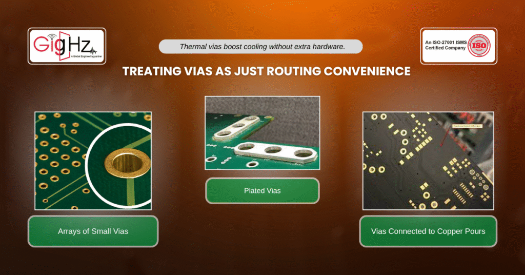 - Use arrays of small vias instead of a few large ones to maximize surface area.