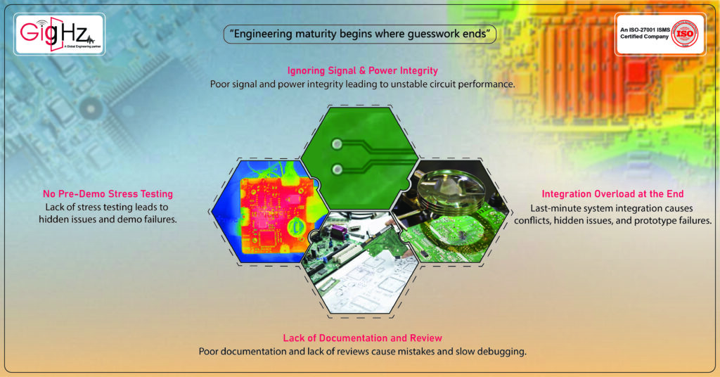 - Hardware and firmware are integrated without verifying interfaces or timing compatibility.